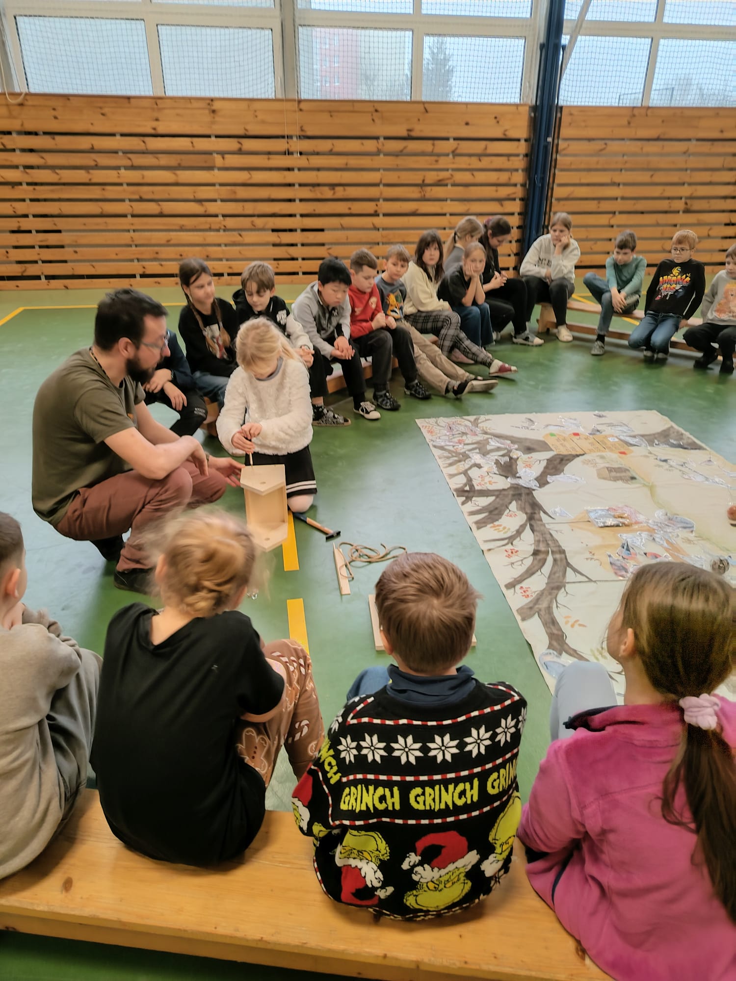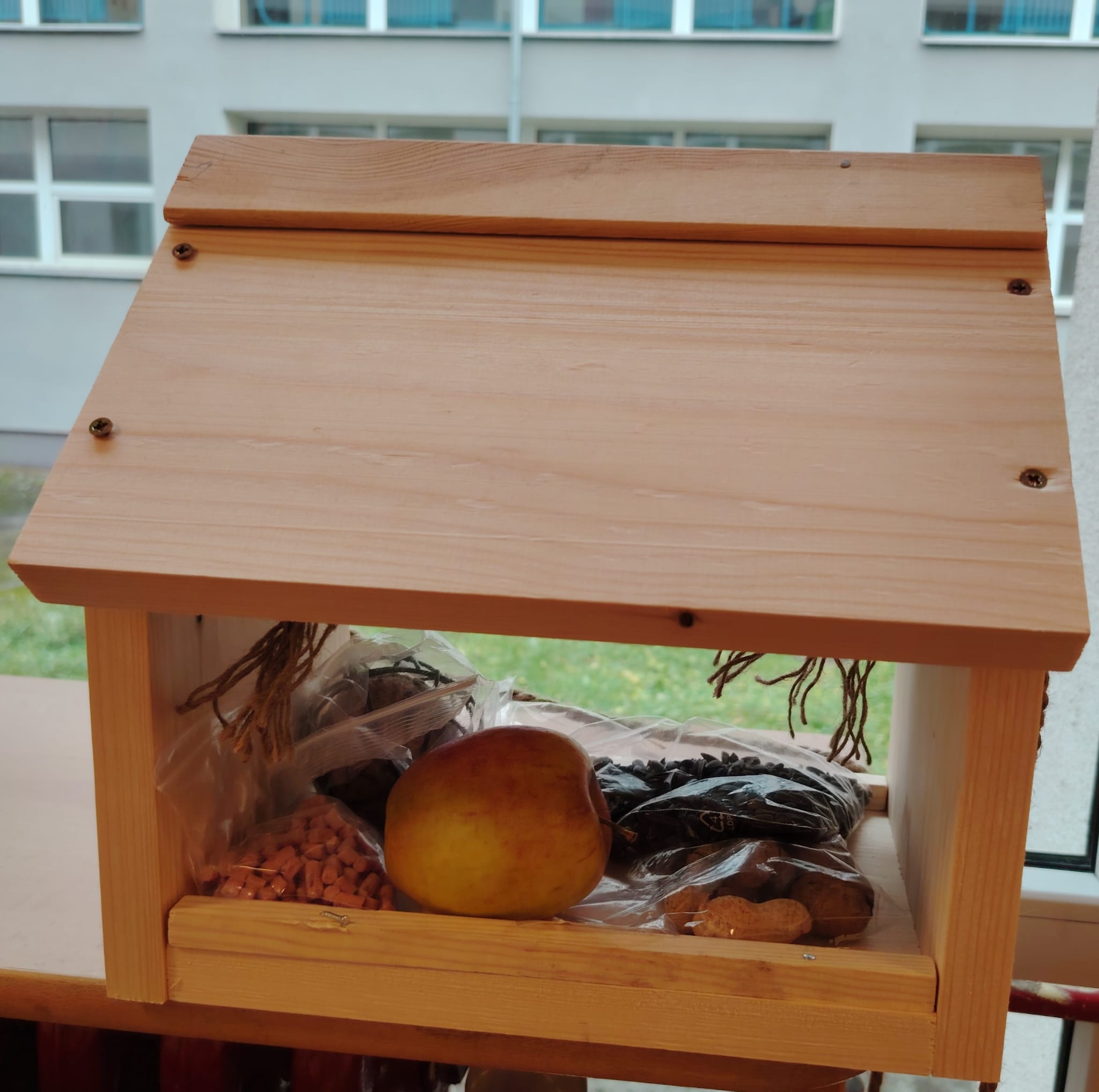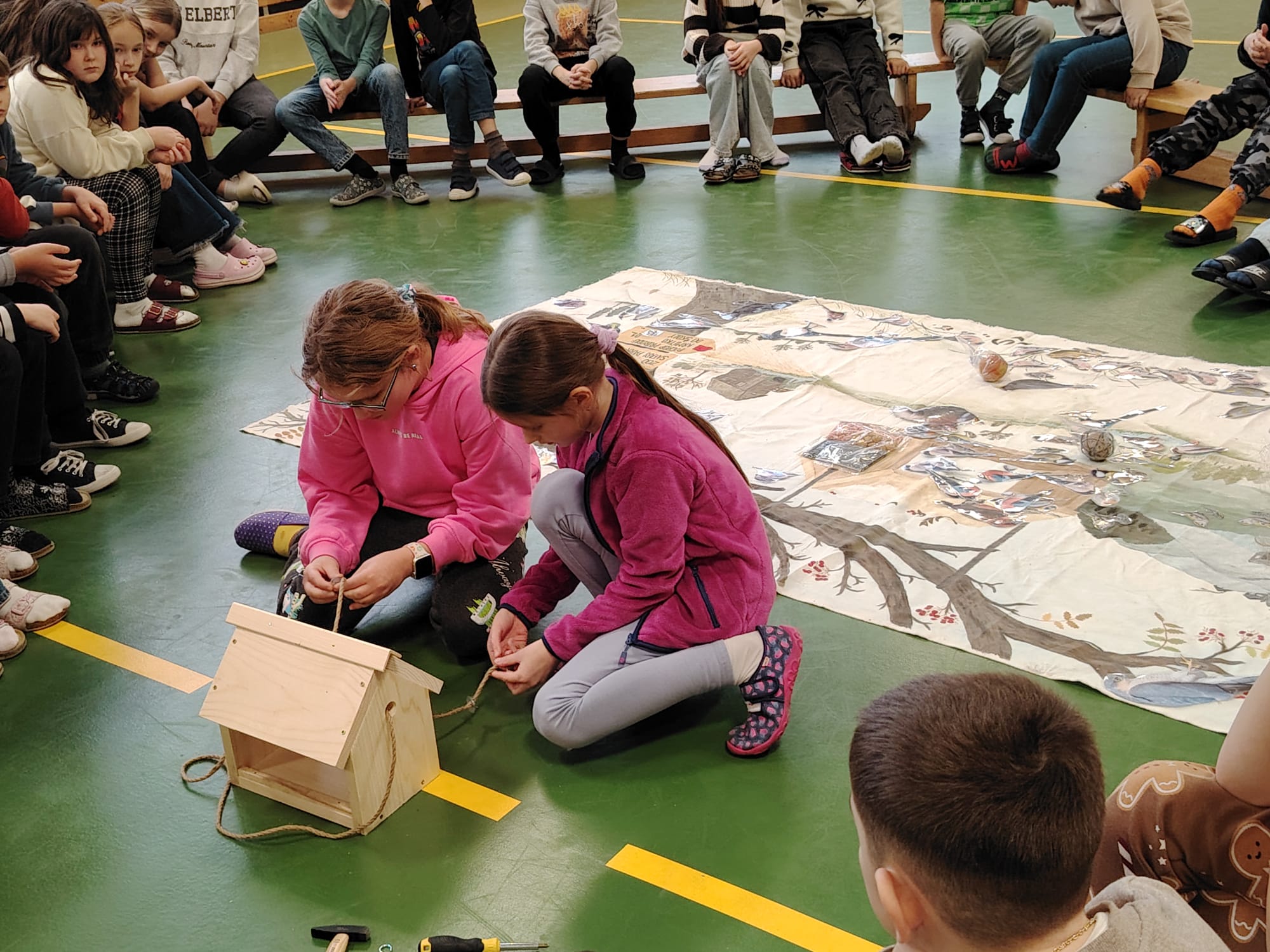 Na závěr si děti společně postavily dřevěné krmítko, které zůstane na školní zahradě. Od