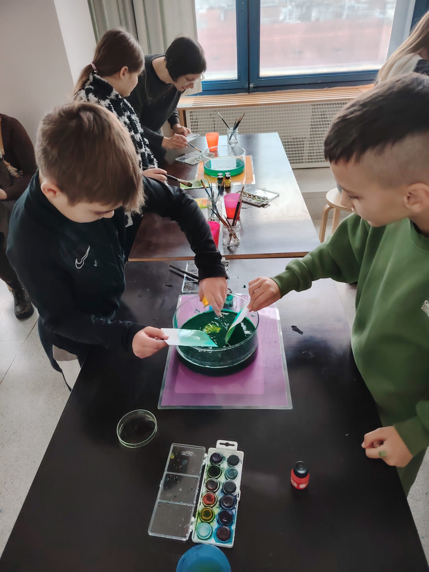 V ateliéru, který se proměnil v malou laboratoř, si děti samy vyzkoušely výtvarné