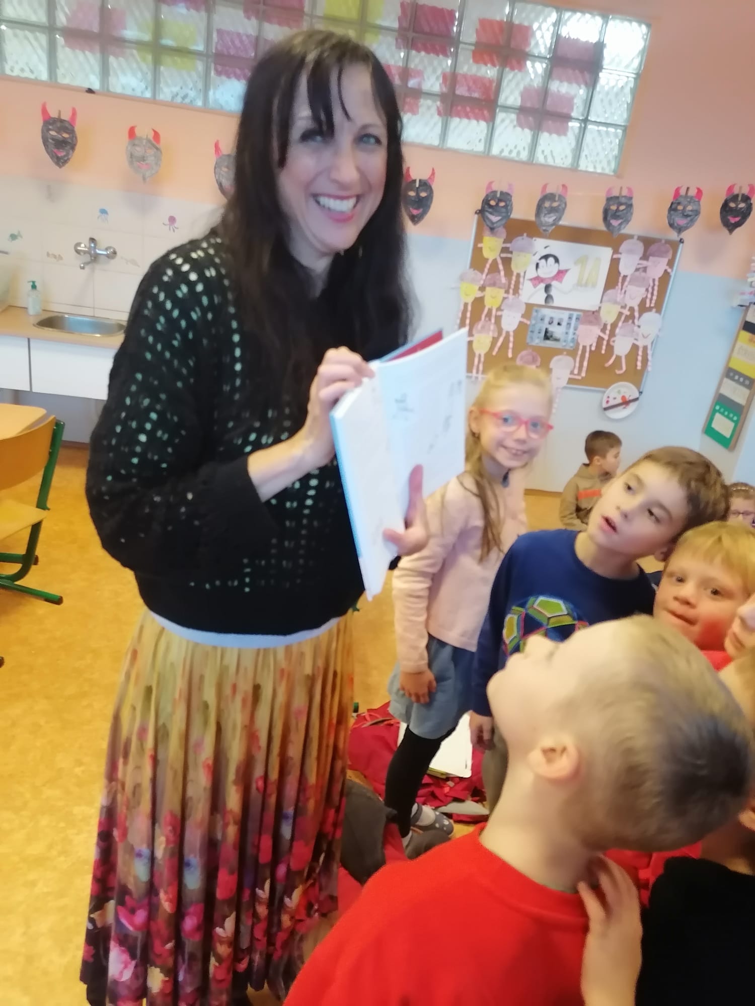 Děti byly z paní Kataríny tak nadšené, že se jí ani nechtěly nechat odejít. A protože byla atmosféra skvělá, některé knížky dětem dokonce věnovala. 💛