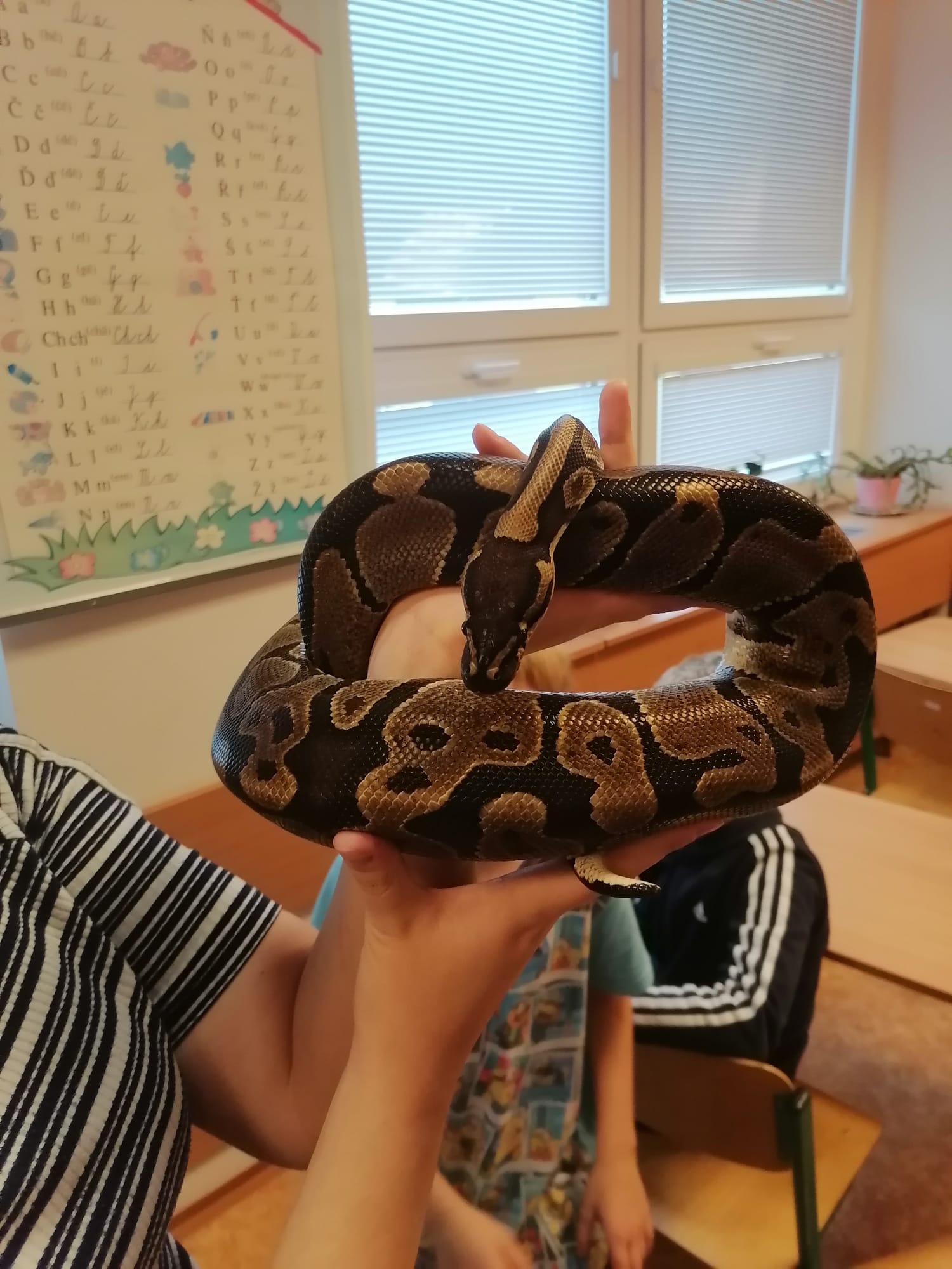 Takovou návštěvu jsme v naší školní družině ještě nezažili! Dnešní odpoledne patřilo setkání s exotickými zvířaty, která běžně vídáme jen v knihách nebo v zoo.