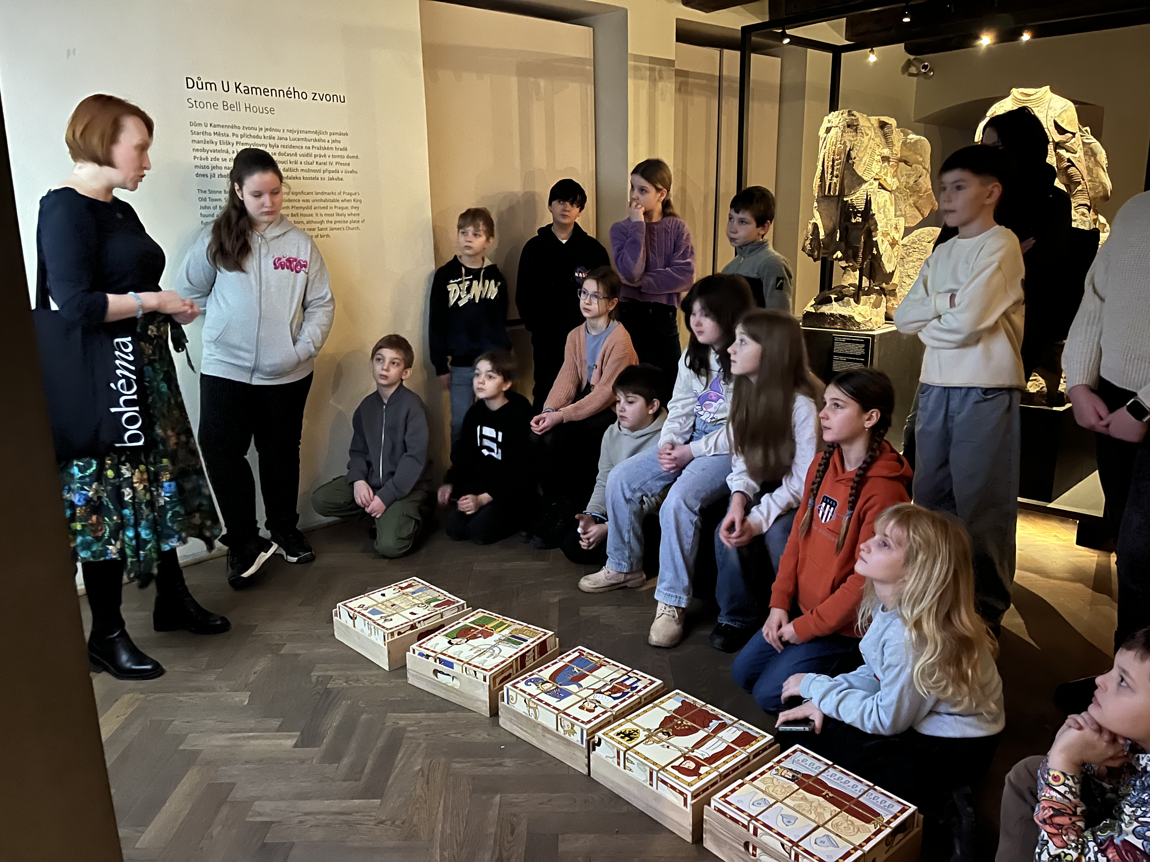 Třída 4.B navštívila výstavu Praha Karla IV., kterou připravilo Muzeum hlavního města Prahy. Expozice je v úžasné historické budově, v Domě U Zlatého prstenu. Výstavou žáky provedla paní průvodkyně, žáci se přenesli o 700 let zpět do historie. Dozvěděli se zajímavosti o životě Karla IV. a především o tom, jak se zasloužil o výstavbu Pražského hradu, Nového města, modernizaci Starého města, stavby Kamenného mostu přes řeku Vltavu.. Z výstavy žáci zamířili do Týnského dvora a také do ulice Štupartská, kde se možná Karel IV. narodil. Ve škole ješte žáci napsali Karlu IV. dopis, ve kterém seznámili Karla IV. s naší dobou.