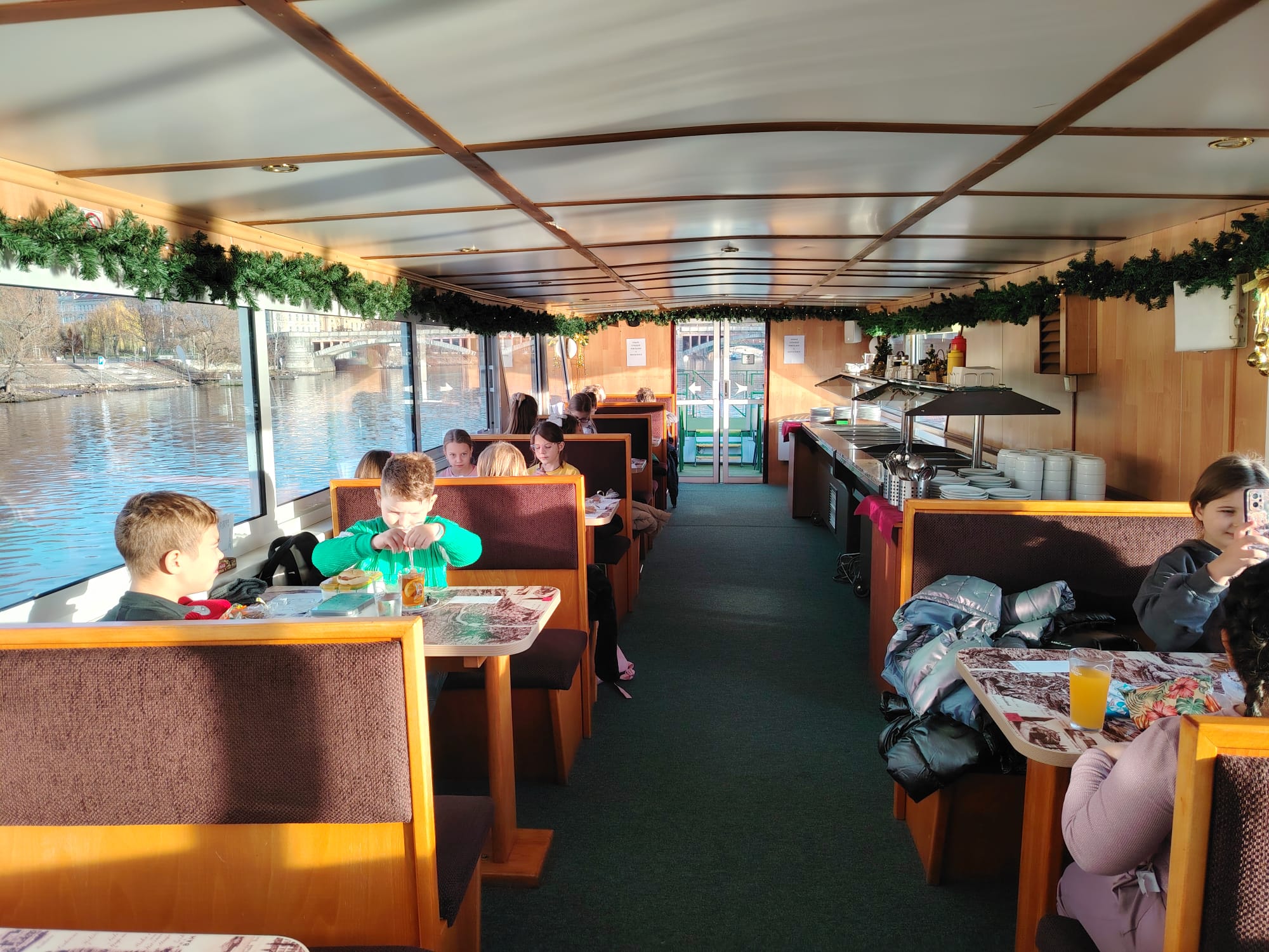 Během vyhlídkové plavby jsme si užili komentovaný výklad o pražských památkách, kolem kterých jsme proplouvali. Děti tak viděly Karlův most, Pražský hrad, Národní divadlo i modernější části města z úplně nové perspektivy. Vyslechly si různé zajímavosti o historii, architektuře i životě kolem řeky Vltavy.
