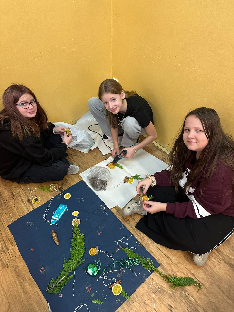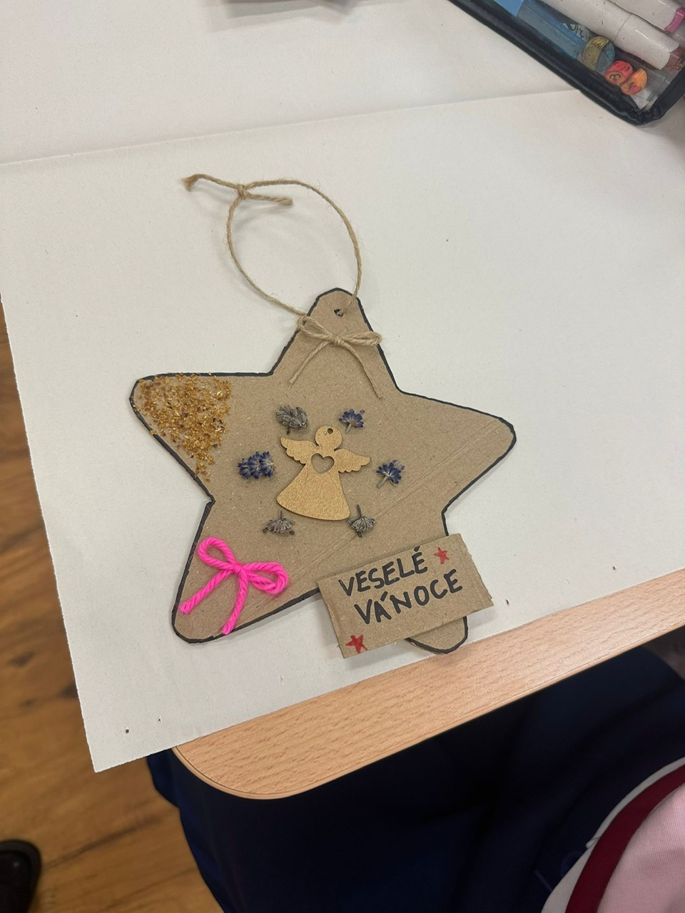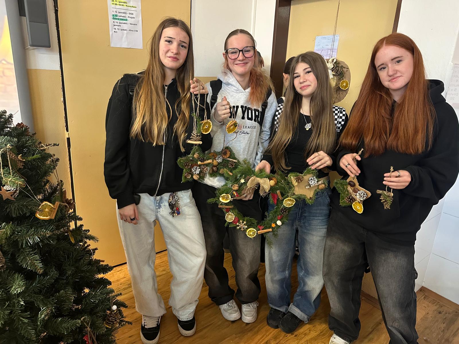 Ozdoby z přírodnin – cílem dílny bylo ukázat žákům, že výzdoba vánočního stromu může být krásná i bez plastu – žáci používali šišky, ořechy, sušené ovoce, skořici, papír a provázky