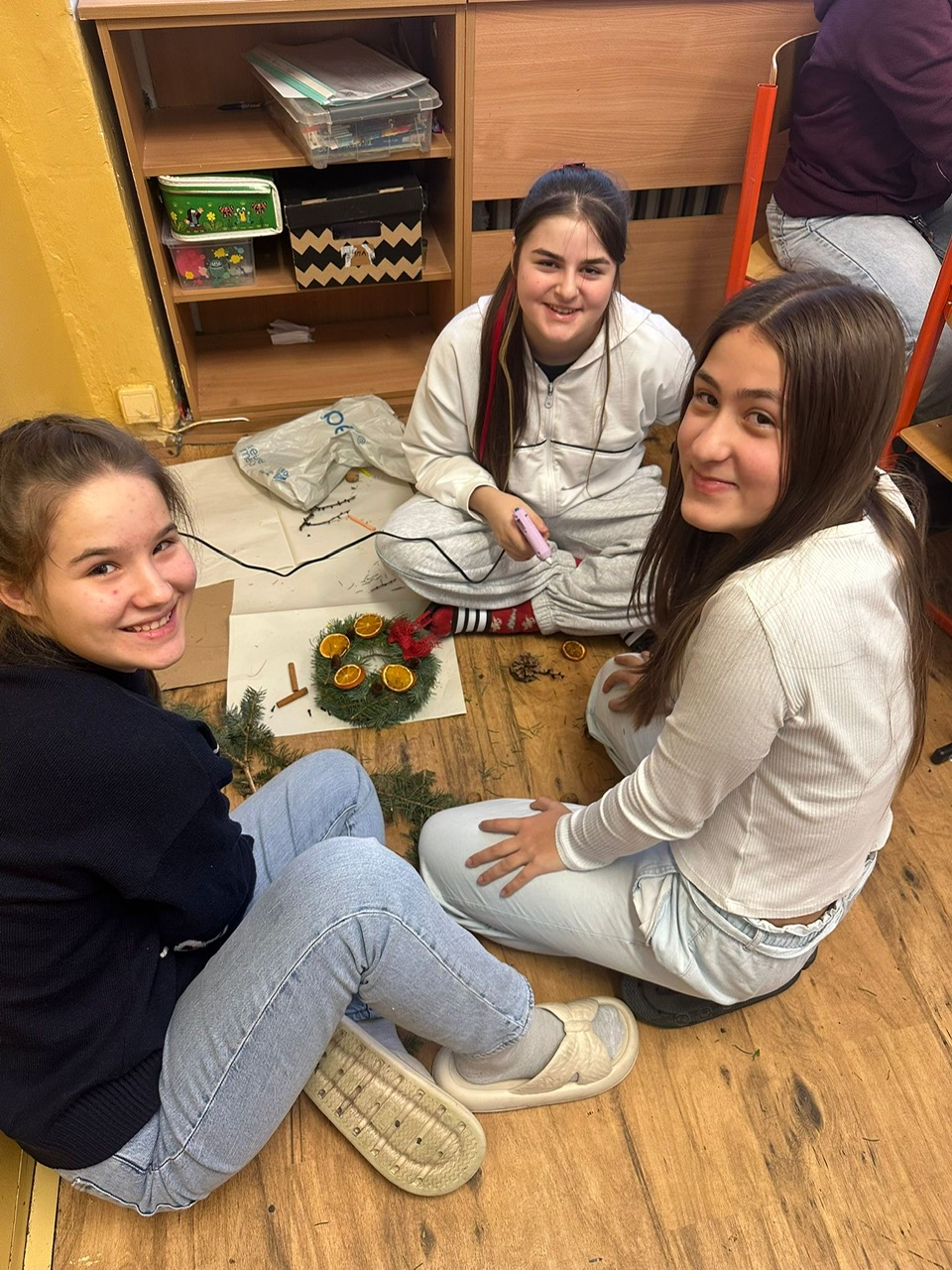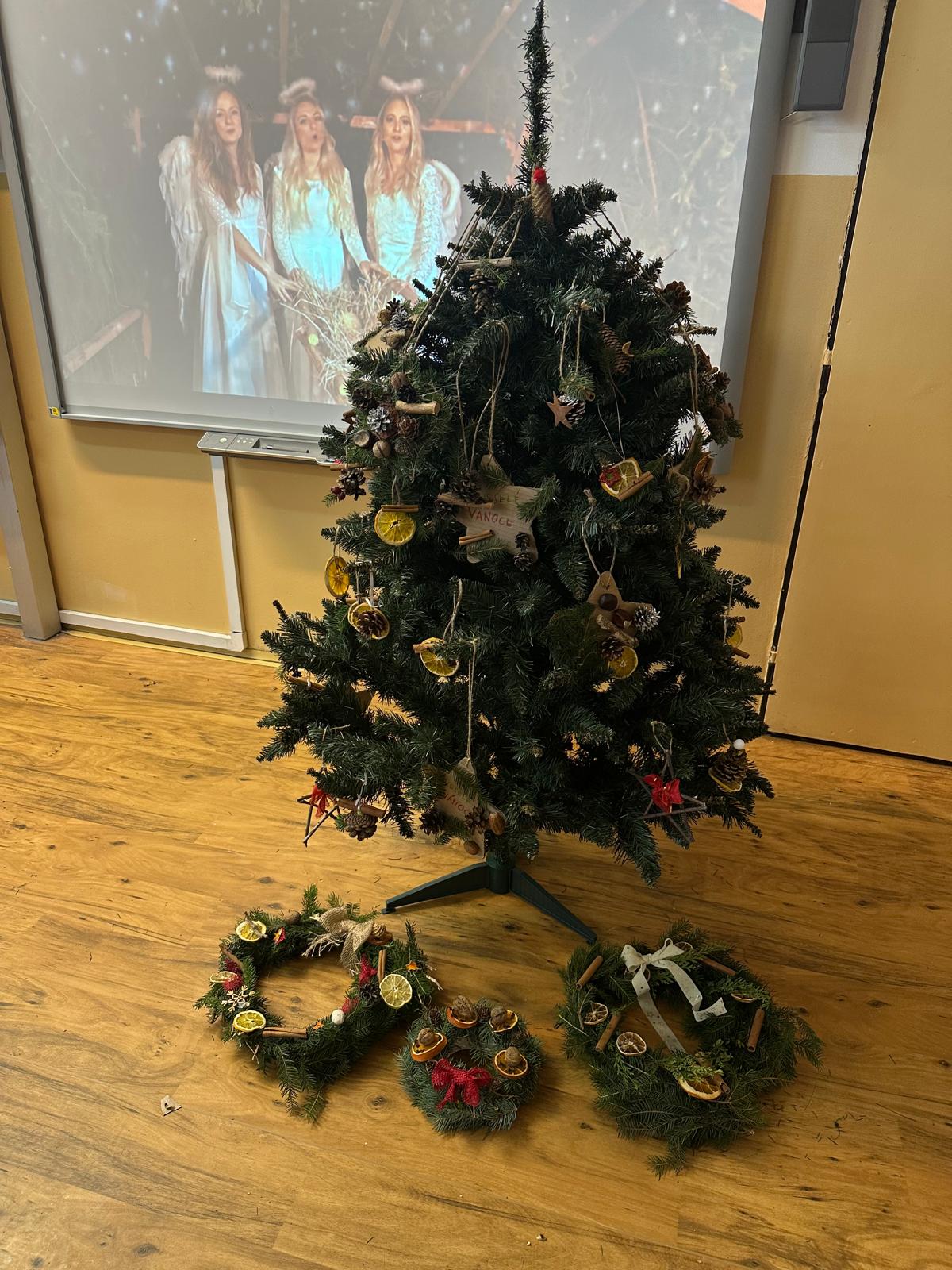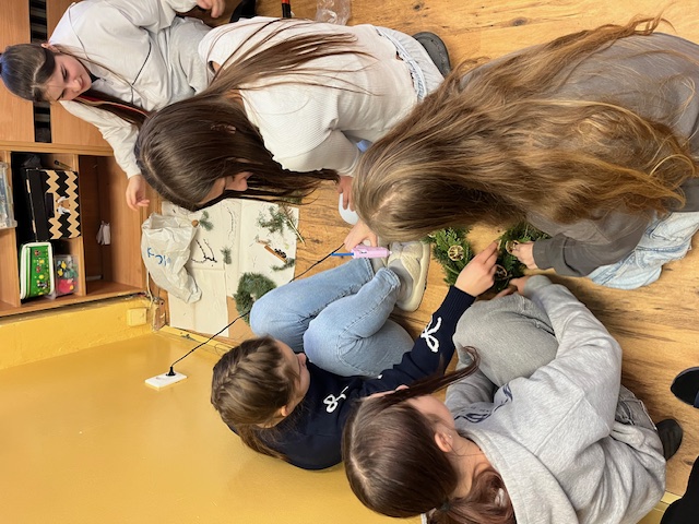 Ozdoby z přírodnin – cílem dílny bylo ukázat žákům, že výzdoba vánočního stromu může být krásná i bez plastu – žáci používali šišky, ořechy, sušené ovoce, skořici, papír a provázky